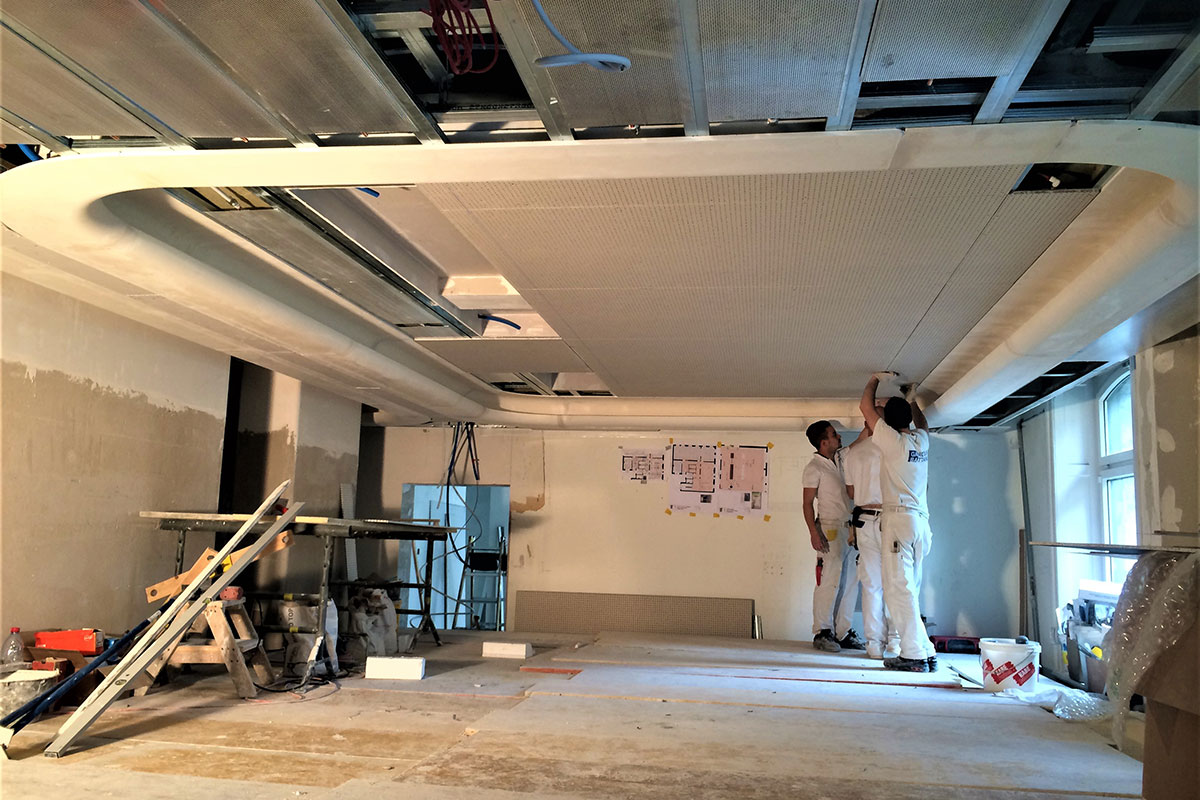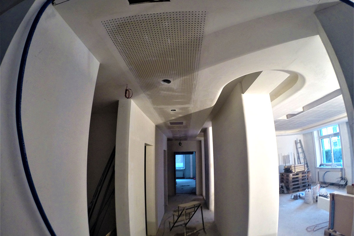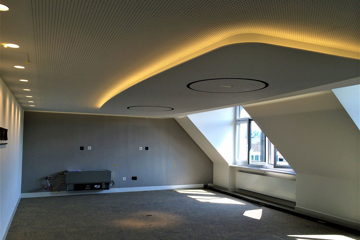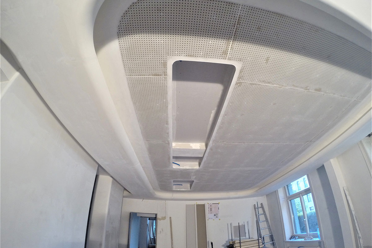 Categories Kühldeckensystem mit Niveaudifferenz und abgerundete Lichtvoute